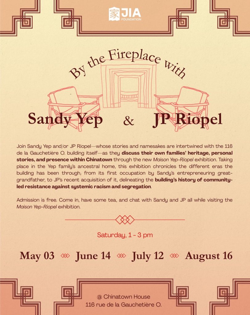 Join Sandy Yep and/or JP Riopel—whose stories and namesakes are intertwined with the 116 de la Gauchetière O. building itself—as they discuss their own families’ heritage, personal stories, and presence within Chinatown through the new Maison Yep-Riopel exhibition. Taking place in the Yep family’s ancestral home, this exhibition chronicles the different eras the building has been through, from its first occupation by Sandy’s entrepreneuring great-grandfather, to JP’s recent acquisition of it, delineating the building’s history of community-led resistance against systemic racism and segregation. Admission is free. Come in, have some tea, and chat with Sandy and JP all while visiting the Maison Yep-Riopel exhibition.