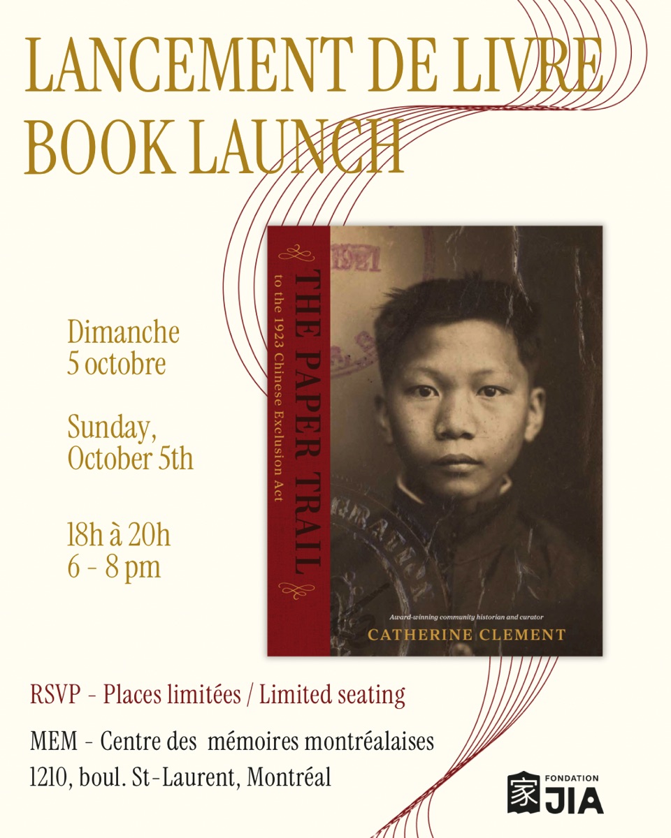 MEM – Centres des mémoires montréalaises 1210 St Laurent Blvd, MontrealAward-winning community historian, curator and author Catherine Clement will share the findings of her landmark project which excavated stories of what really happened during one of the darkest chapters in Canadian history.Her book, The Paper Trail to the 1923 Chinese Exclusion Act, is the first to explore the broad range of “human experiences” of exclusion […]